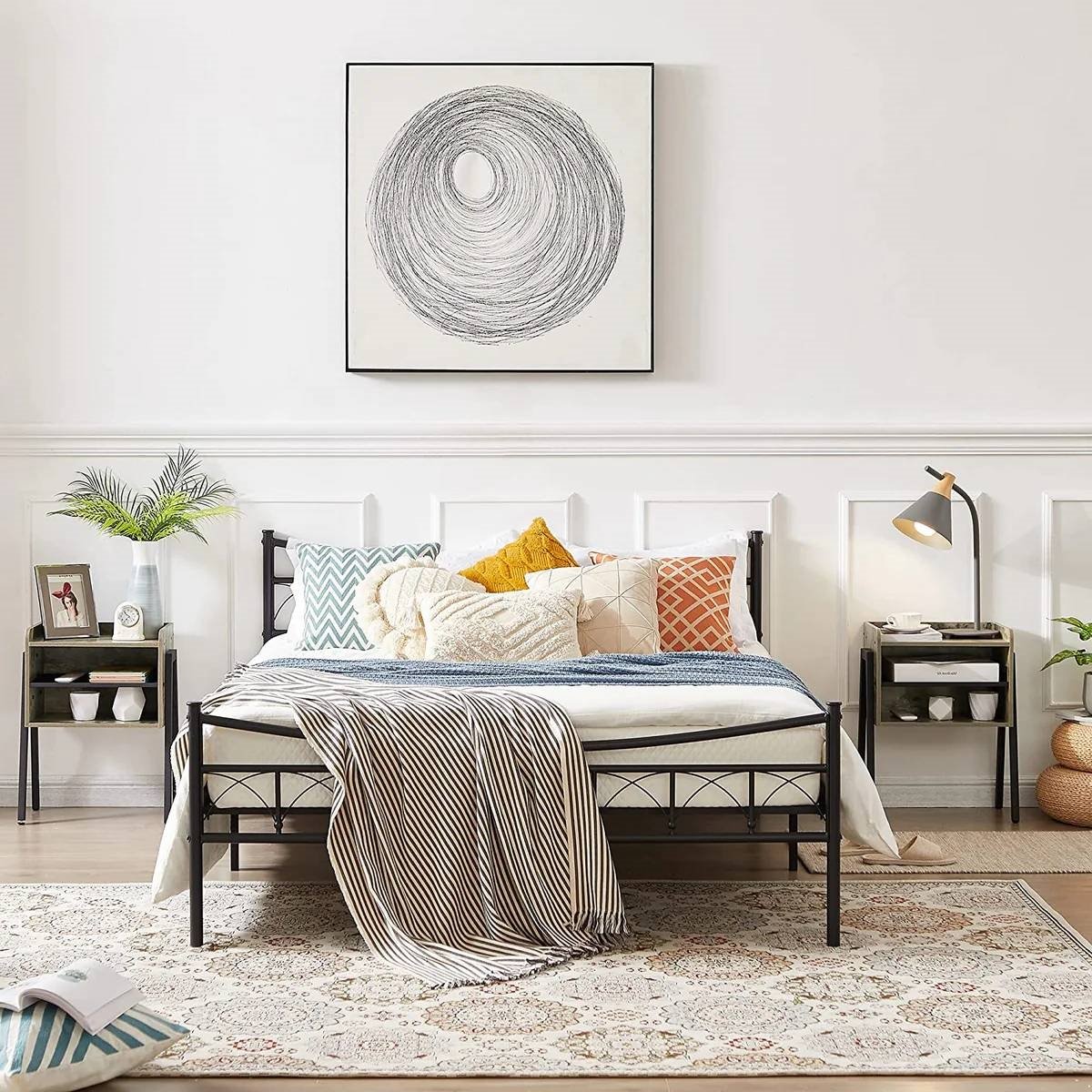 This Set of 2 Modern Industrial Grey Wood Black Metal Side Table Nightstand End Table crafted with a vintage wooden board and black metal pipe frame perfectly next to your sofa or functions as a pair of nightstands. The side table set of 2 with 2 large capacity storage compartments offers extra storage. It's the perfect choice for your books, magazines, chargers, and other bedside stuff. Unique stacking design. You can display one or stack it on top of the other to increase more storage space for your living room, Besides, with adjustable feet for easy leveling on uneven floors and to protect floors from scratches. It can be placed in the living room, bedroom, reception room, or in an entryway; especially in small places. Also can be used as a bedside table, telephone table, filing cabinet, sofa side table. More features are waiting for you to explore. Detailed instructions and all parts and screws, and assembly tools are included. You don’t need to have an engineering degree to assemble this end table.