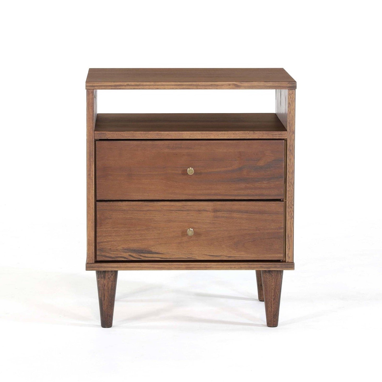 Farmhouse Rustic Mid Century 2 Drawer Nightstand