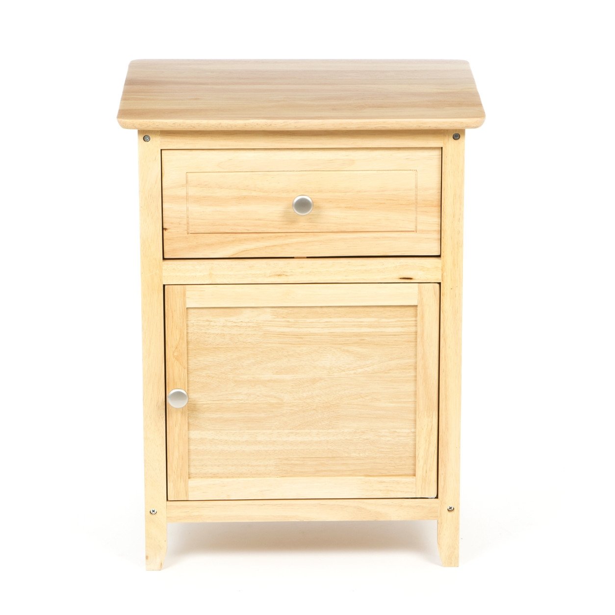 Natural Wood Finish 1-Drawer Bedside Table Cabinet Nightstand