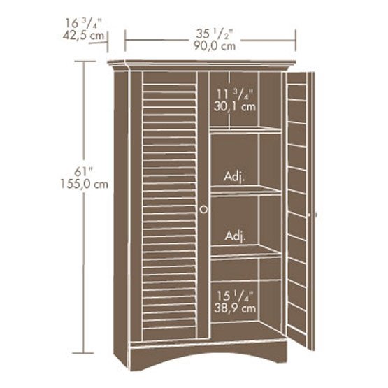 Constructed from top quality wood, MDF, and wood veneer, this stunning Armoire Wardrobe Storage Cabinet is sturdy and long lasting. It is a perfect blend of utility and style. Sporting a serene antique white finish, this beautiful storage cabinet enhances the overall appearance of your room. The blind like design of this cabinet further amplifies its appearance. This sleek and compact storage cabinet easily fits in to small nooks and corners. The two knobs in the front of this cabinet allow easy and simple handling. Thanks to the turned feet base, this storage cabinet remains firm and stable on the floor. The four adjustable shelves of this storage cabinet effortlessly accommodate a range of various sized items. You can keep extra blankets, bed sheets, pillows, towels, clothes, handbags, briefcases, and many more. The top can be used to display some decorative planter or vase.