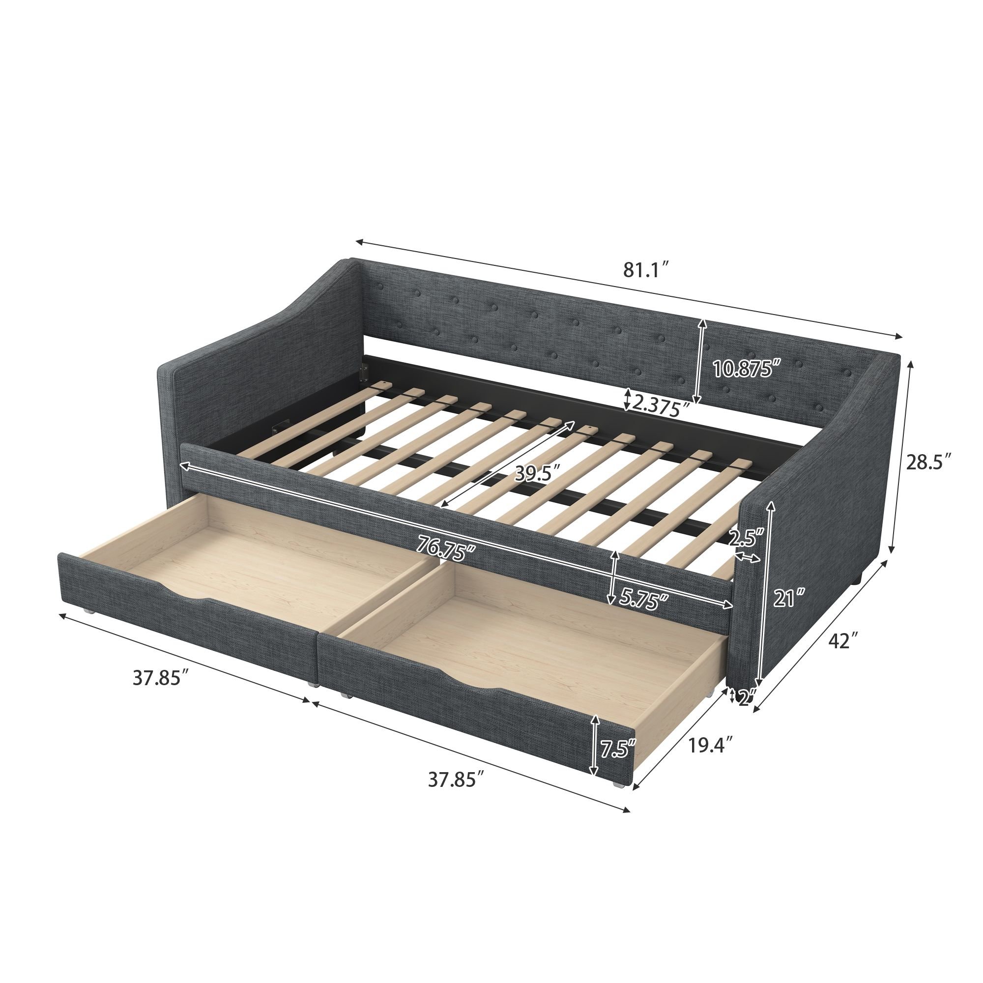 Twin Size Daybed with Drawers Upholstered Tufted Sofa Bed, Button Back and Piping, Waved Shape Arms Twin Size Daybed with Drawers Upholstered Tufted Sofa Bed, Button Back and Piping, Waved Shape Arms Twin Size Daybed with Drawers Upholstered Tufted Sofa Bed, Button Back and Piping, Waved Shape Arms Twin Size Daybed with Drawers Upholstered Tufted Sofa Bed, Button Back and Piping, Waved Shape Arms Twin Size Daybed with Drawers Upholstered Tufted Sofa Bed, Button Back and Piping, Waved Shape Arms Twin Size Daybed with Drawers Upholstered Tufted Sofa Bed, Button Back and Piping, Waved Shape Arms Twin Size Daybed with Drawers Upholstered Tufted Sofa Bed, Button Back and Piping, Waved Shape Arms